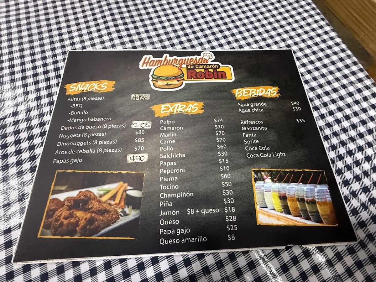 The inviting atmosphere, complemented by live music, makes dining here even more enjoyable. With fresh ingredients and reasonable prices, Hamburguesas de camaron Robin is not just a meal; it's a delightful experience that keeps guests coming back for more.